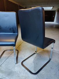 3 sedie con struttura in acciaio cromato e seduta in ecopelle nera. In ottime condizioni