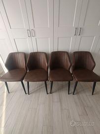 4 sedie in ecopelle colore marrone. Due sedie presentano un piccolo segno , le altre sono intatte.