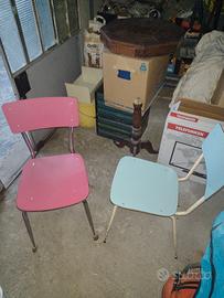 Sedie in formica di vari colori, anni '60-'70, buono stato. Solo 2 euro l'una. Ne sono rimaste solo 3: due blu e una bianca.