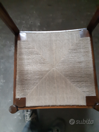 Vendo 4 sedie in legno color marrone con sedile intreccio corda usate ma in ottime condizioni vendo in blocco a 80 euro