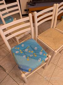 sedie in legno massiccio bianche con seduta in paglia, vintage, molto solide come le facevano una volta ma da sistemare (ad esempio ridipingere perché in alcuni punti si è rovinato il colore bianco). la seduta in paglia è perfetta perché è stata cambiata recentemente, 25€ l'una, 100€ di 5