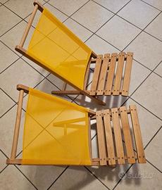 Sedie in legno, seduta bassa. Ottime per spiaggia o giardino. Usate una volte condizioni perfette, con custodia in plastica.
