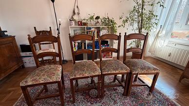 Sedie in legno scuro tipo noce un buono stato h seduta 50 cm , totale altezza dello schienale h 100. Seduta di stoffa fatta da tappezziere all interno come da ultima foto ci sono molle No spedizione .Ritiro presso domicilio venditore zona Niguarda