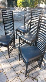 Vendesi n. 4 sedie in legno massello laccato nero lucido con seduta in pelle design simil Cassina. Le sedie sono ben tenute con normali segni di usura ritiro a mano