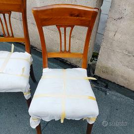 Ciao a tutti, vendo set di 6 sedie in bellissimo legno di noce, tutte e 6 in ottime condizioni, perfettamente restaurate e rifoderate a nuovo da professionista,