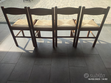 Vendo n. 4 sedie in legno e paglia. Tenute benissimo. Prezzo cadauna