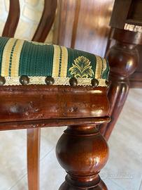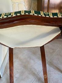 Vendo 6 sedie normali, più 2 sedie con braccioli, tutte in ottimo stato, sedute in tessuto borchiate a mano. Sedie normali €. 30,00 l’una Sedie con braccioli €. 40,00 l’una In blocco €. 250,00 (eventuale possibilità di abbinare una Chaise Longue con legno e tessuto uguale alle sedie a €. 150,00)