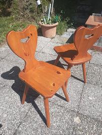 4 Sedie in legno in stile rustico e tirolese, misure h cm. 84 largh. seduta cm 37, e prof. cm. 40. prezzo indicato da intendersi per tutte e 4, singolarmente € 15.