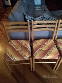 Sedie in legno di faggio massello con impagliatura in buono stato. Seduta 40 x 40 cm altessa schienale 84 cm. Disponibili 4 o 6 sedie 15 euro cadauna. Solo ritiro in zona NO spedizione