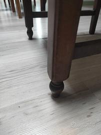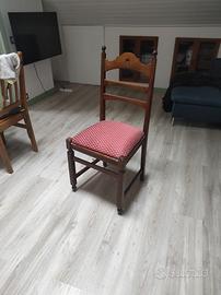 Vendo in blocco 4 sedie in legno, buono stato. I cuscini sono rimuovibili per eventuale cambio tappezzeria.