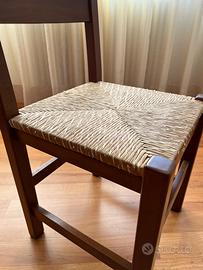 10 magnifiche sedie in legno massello con sedile impagliato. Una sedia su 10 (come vedi in foto) ha la seduta rovinata.