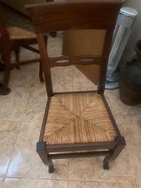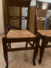 Vendo sei sedie da cucina in legno massello di colore mogano, con seduta in corda in ottimo stato, usate pochissime volte .