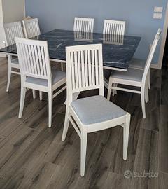 Per cambio arredamento vendo in ottimo stato 8 sedie in legno massello verniciate bianche come da foto. Imbottiture come nuove, qualche piccolo segno di usura sulla scocca in legno. Il prezzo è della singola sedia.