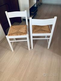 Vendo una coppia di sedie in legno laccato bianco con sedile impagliato.