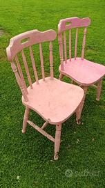 2 sedie in legno ritinteggjate in rosa, vendibili anche singolarmente a 20 euro cadauna.