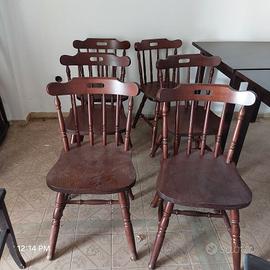Vendo in blocco 14 sedie i legno rustiche. 6 di un modello e 8 dell'altro modello a 150 euro oppure a 15 euro cad. Ritiro in loco. No spedizioni.