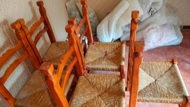 Sedie in legno set di Nr. 05 seduta paglia. usato