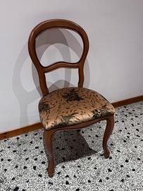 Vendo 6 sedie in legno stile classico, con seduta imbottita e rivestimento decorato.