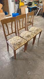Set di 3 sedie in legno da interno in condizioni medio buone, tappezzeria usurata. Dettagli in foto.