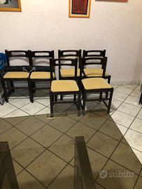Vendesi n 6 sedie in ottimo stato . Le sedie sono il legno buono color wenge’ e la seduta e’ in alcantara color ocra ….prezzo a sedia euro 10 euro a sedia quindi totale euro 60 , vendibile anche singolarmente