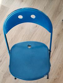 n. 6 sedie di metallo blu, richiudibili, occupano pochissimo spazio.