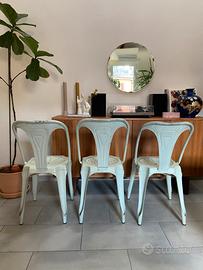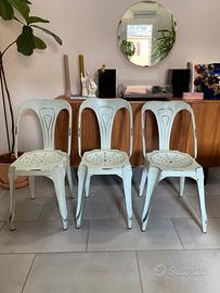 Set di 3 sedie in metallo, stile industrial, verniciatura verde acqua chiaro, effetto shabby chic