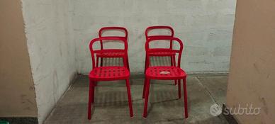 Vendesi n.4 sedie rosse in metallo, smontate, con accessori di montaggio (viti, bulloni, etc.). Carico, trasporto, scarico a cura dell'acquirente. Vendesi in blocco.