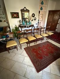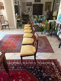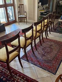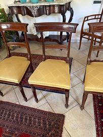 6 sedie in mogano stile inglese, buone condizioni del legno. Due sedie richiedono la sistemazione delle molle della seduta. Zona Boccea Casalotti. 750€