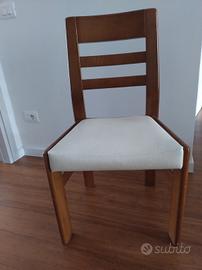 vendo due sedie in noce massello, con seduta imbottita, in ecopelle colore panna. Comoda sia per cucina che soggiorno. 25 euro l'una.