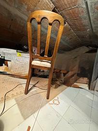 Vendo quattro sedie in noce con sedili rivestiti con stoffa damascata.