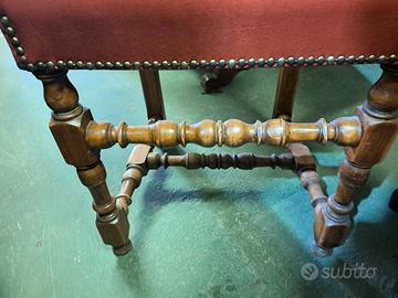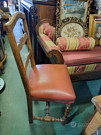 gruppo di 4 sedie in noce con tappezzeria in pelle colore rosso / bordeaux ottime condizioni generali....M&P Antichità siamo un negozio specializzato in antiquariato vintage e shabby vendita al dettaglio e all ingrosso scarichi settimanali oltre 500 articoli in negozio, abbiamo una vasta scelta di como comodini tolette armadi letti vetrine vetrinette credenze servanti angoliere librerie tavoli tavolinetti sedie poltrone poltroncine divani lampade lampadari tappeti scrivanie scrittoi secretere ribaltine consolle quadri cornici specchi cassapanche bauli oggettistica varia idee regalo e molto altro ci troviamo a Roma zona Castelverde via Massa San giuliano 26b POSSIBILITÀ DI CONSEGNA E SPEDIZIONE IN TUTTA ITALIA