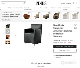 Vendo 2 comodissime sedie / poltroncine di design Capri Jolly firmate da Hannes Wettstein per Baleri Italia interamente rivestite in pelle color nero.
