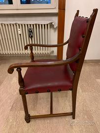 Set di tre sedie di cui 1 con braccioli vendibili anche separate. Linea classica in pelle imbottita bordeaux e impunture nere. Struttura in legno solida e resistente. Vintage 68/70 ben tenute e utilizzate in studio. Linea classica ed elegante per zona living sala da pranzo e studio. La sedia con i braccioli 80 eu. Le altre 2 sedie 70 eu cad. Prezzi trattabili e se prese tutte e tre insieme valutiamo