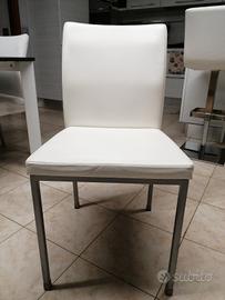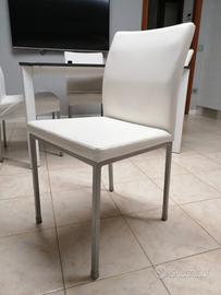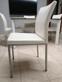 Vendo 4 sedie marca DOMITALIA in pelle bianca e gambe in metallo grigio, usate, più set coprisedia.