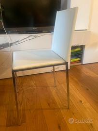 Set di 4 sedie in pelle rigenerata con scocca in metallo. Adatte per chi cerca una soluzione economica ma al contempo di design per arredare un ambiente accessorio o una seconda casa…