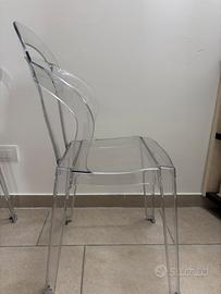 Vendo due sedie in plastica trasparente in buone condizioni.! Il prezzo é riferito per entrambe le sedie!!