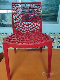 vendo 4 sedie rosse in policarbonato come nuove adatte per interno ed esterno vendo per mancanza di spazio solo contatti telefonici