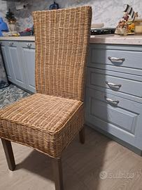 vendo 4 sedie in rattan 3 colore bianco e 1 marrone