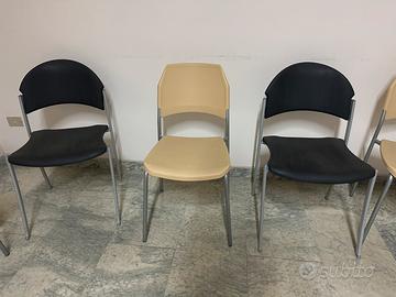 14 sedie in resina impilabili ( 6 nere e 8 bejge) impilabili, in perfette condizioni, lievi minuti segni. Leggere, ottime per uso ufficio o anche domestico. Ritiro in sede a carico dell’acquirente.