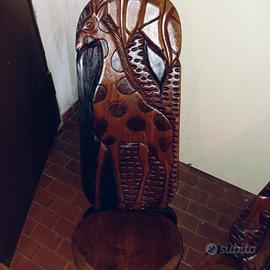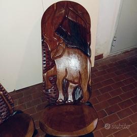 due sedie intarsiate a mano da artigiano senegalese in tek come da foto. La seduta si innesta nella parte frontale e sono molto robuste ( reggono pesi oltre 100 kg).