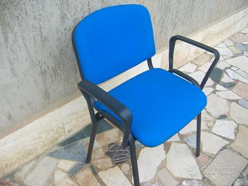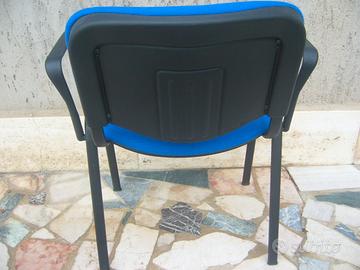 Sedie nuove tipo ufficio ,in metallo nere, con braccioli e seduta con schienale in tessuto blu,vendo per sgombero magazzino a 40 euro la coppia, disponibili 3 coppie.