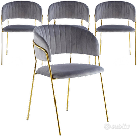 Sedie moderne in velluto grigio- Senape- Rosa con struttura in metallo dorato.