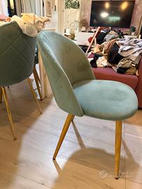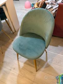 Vendo sedie dal design moderno ed elegante, rivestite in velluto verde acqua, perfette per sala da pranzo, soggiorno o studio. Le sedie sono comode e avvolgenti, con schienale curvo che garantisce un ottimo supporto. Struttura solida con gambe in legno chiaro, stile nordico. ✅ Ottime condizioni ✅ Tessuto morbido e facile da pulire ✅ Design raffinato, adatto a diversi ambienti Ideali per dare un tocco di classe alla casa senza rinunciare al comfort. Trasporto a carico dell'acquirente Disponibili tre sedie acquistandole in blocco 75 €