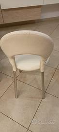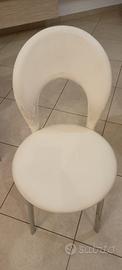Vendo 4 sedie Ingenia color panna in ecopelle con gambe cromate in acciaio. La pelle è rovinata ma la struttura ancora in ottimo stato. Due delle sedie hanno i piedini da rifare.