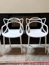 Set da 6 sedie in polipropilene bianco con elegante finitura intrecciata, ideale per ambienti moderni. Materiale pratico, facile da pulire e adatto anche a spazi coperti o zone esterne grazie alle proprietà del polipropilene. Piedini con gommini antiscivolo trasparenti per maggiore stabilità e protezione del pavimento.