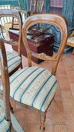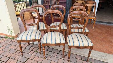 gruppo di 6 sedie anni 60 in faggio schienale a medaglione legno in ottime condizioni, no tarli e soprattutto stabili. Il tessuto va sostituito ma restano comunque utilizzabili. ...M&P Antichità siamo un negozio specializzato in antiquariato vintage e shabby vendita al dettaglio e all ingrosso scarichi settimanali oltre 500 articoli in negozio, abbiamo una vasta scelta di como comodini tolette armadi letti vetrine vetrinette credenze servanti angoliere librerie tavoli tavolinetti sedie poltrone poltroncine divani lampade lampadari tappeti scrivanie scrittoi secretere ribaltine consolle quadri cornici specchi cassapanche bauli oggettistica varia idee regalo e molto altro ci troviamo a Roma zona Castelverde via Massa San giuliano 26b POSSIBILITÀ DI CONSEGNA E SPEDIZIONE IN TUTTA ITALIA PER INFO LUCA