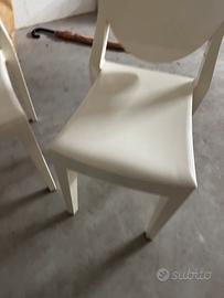 Sedie bianche kartell disponibili a padova, 160€ la coppia, per 4 €300 hanno evidenti segni d’usura quali sfrisi e segni, piedini di gomma rotti sarebbero da cambiare ma non ne limitano l’uso.
