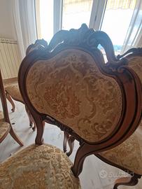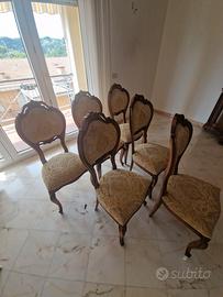 Sedie vintage originali Vendo splendido set di n 6 sedie vintage originali, perfette per arredare casa con stile retrò o per locali e studi creativi. ✨ Caratteristiche: Materiale: struttura in legno massello Seduta: [ tessuto / imbottita ] Condizioni: ottime vendo causa cambio arredamento. tenute in maniera maniacale. euro 90