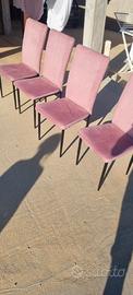 4 sedie in velluto rosa sfoderabile e struttura in ferro, usate un mese e sostituite per cambio arredo, perfette