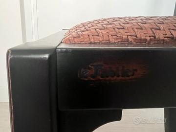Vendo 4 sedie Le Fablier in legno color wenge , schienale alto con motivo traforato, marchio inciso a fuoco sul fianco.